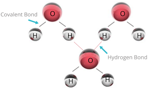 - Each water molecule can form up to four hydrogen bonds.