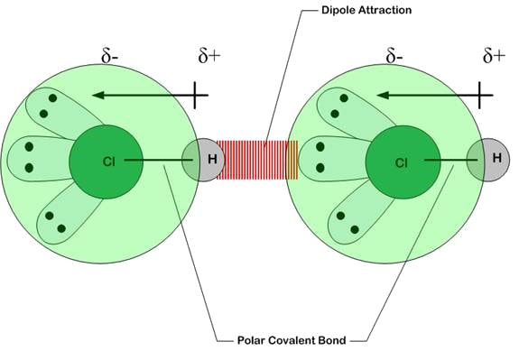 - A dipole is formed → shown as \( \mathrm{\delta^+ -\!\!\!\!\rightarrow\ \delta^-} \).