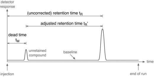 The retention time is the time taken for a substance to pass through the column from injection to detection.