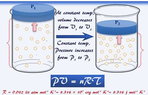 - Smaller volume → molecules hit walls more often → higher pressure.