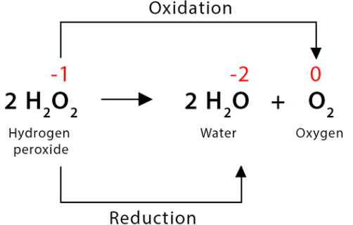 Same oxygen species is both oxidised and reduced → disproportionation.