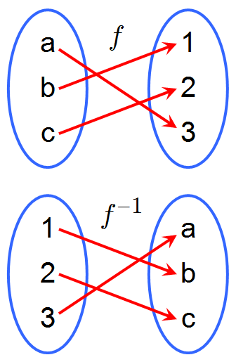 \( f^{-1}(y) = x \iff f(x) = y \).