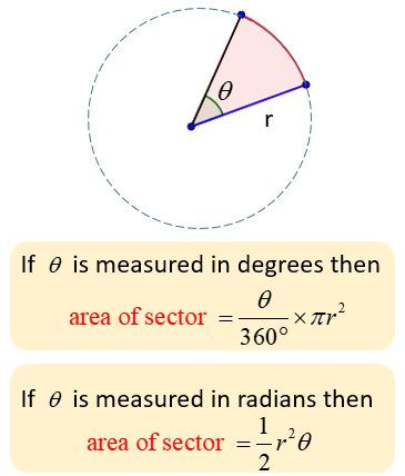 Formula: \(A = \dfrac{1}{2} r^2 \theta\).