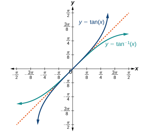 \(\tan^{-1}x = \theta \quad \Rightarrow \quad \tan \theta = x, \; -\infty < x < \infty, \; \theta \in \left(-\dfrac{\pi}{2}, \dfrac{\pi}{2}\right)\).