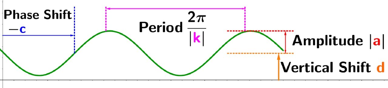 - \(y = \sin(x + c)\) or \(y = \cos(x + c)\) → horizontal shift (phase shift) of \(-c\).