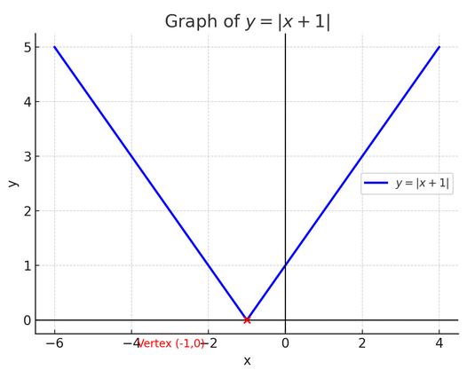 The graph is a “V” with vertex at \((-1,0)\), slope \(1\) to the right, slope \(-1\) to the left.