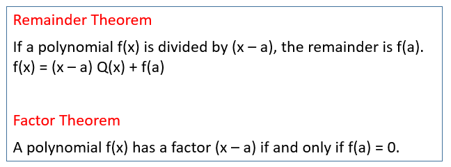 Factor Theorem and Remainder Theorem