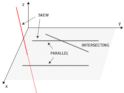 - If the lines are not parallel and do not intersect, then they are skew (non-coplanar).