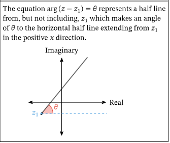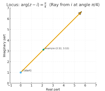 - If inequality is used, e.g. \(\arg(z – a) < \alpha\), then the locus is a region between rays (a sector).