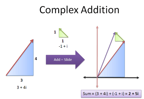 - Adding two complex numbers corresponds to adding their vectors on the Argand diagram (parallelogram rule).
