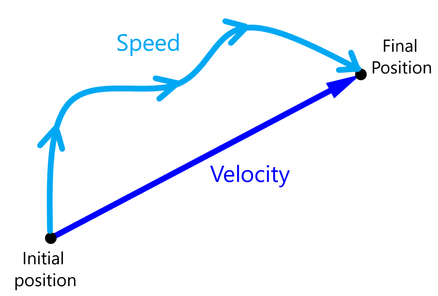 - Speed: The rate of change of distance with respect to time.