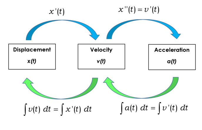 \(s(t) = \int v(t)\,dt + C_1, \qquad v(t) = \int a(t)\,dt + C_2\)