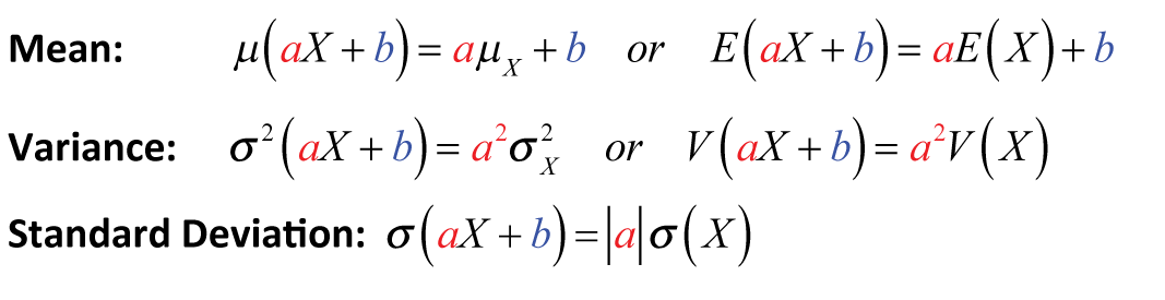 \( \mathrm{Var}(aX + b) = a^2 \mathrm{Var}(X) \)4