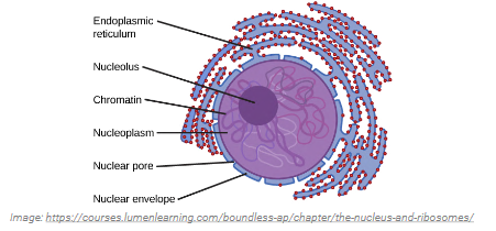 • surrounded by 2 membranes, known as the nuclear envelope which is continuous with the RER.