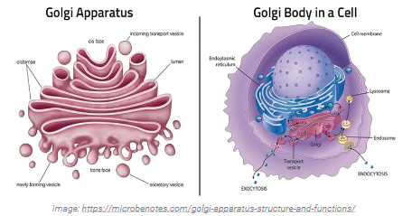 • small sacs (vesicles) break off from the ER and join to form the golgi body