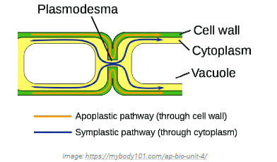 • allows the transport of water, sucrose, amino acids, ions, etc., between cells without crossing membranes