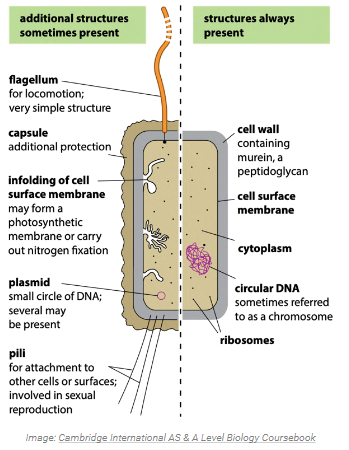• cell wall made of murein (peptidoglycan = protein + polysaccharides)