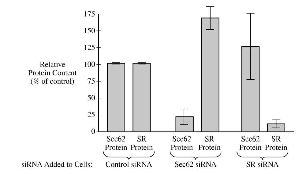 (ii) Justify why the researchers included the control of measuring the relative amounts of both \( Sec62 \) and \( SR \) proteins in cells that were treated with \( Sec62 \) siRNA only.