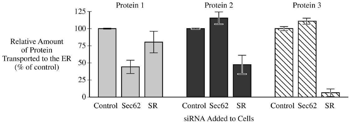 (ii) Proteins \(2\) and \(3\) showed an increase in percent transport to the \( ER \) when treated with \( Sec62 \) siRNA compared with the control.