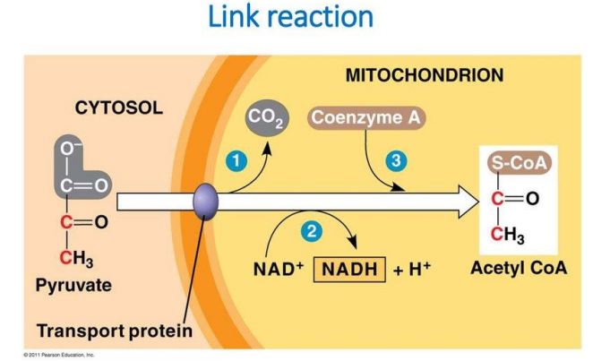 - $ 2Pyruvate + 2 Coenzyme A + 2 NAD^+ ⟶2 Acetyl-CoA + 2CO^2 + 2 NADH$