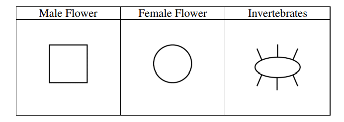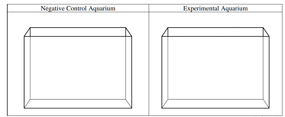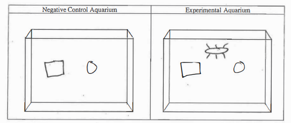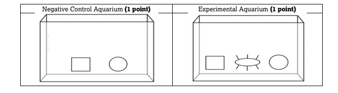 (a) Use the symbols below and the template aquariums to demonstrate the experimental design for testing the researcher’s claim that mobile aquatic invertebrates can pollinate seagrass in the absence of circulating water. Draw the appropriate symbols in the negative control aquarium AND the experimental aquarium. Do not use any symbol more than once in the same aquarium.