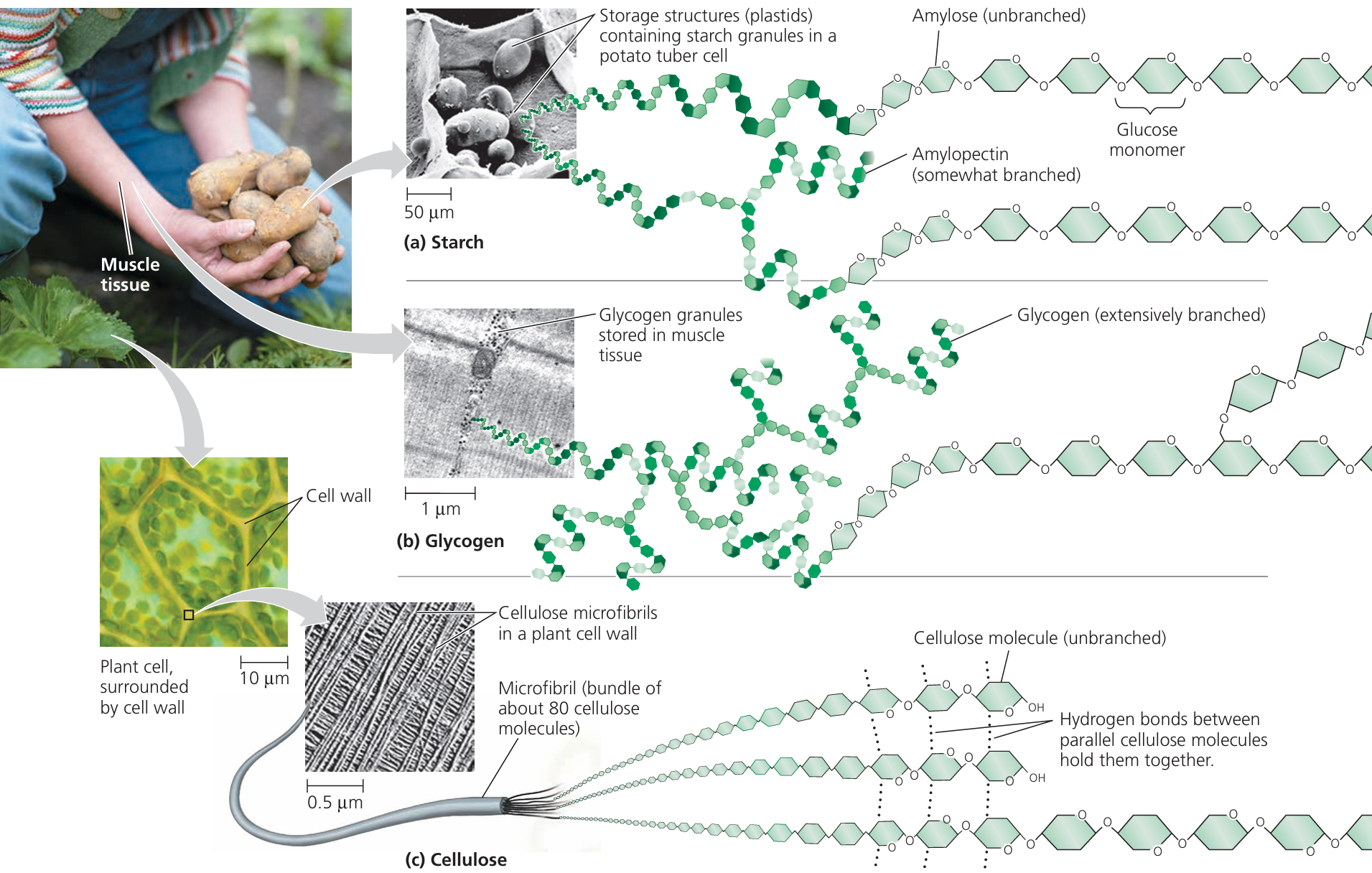 - e.g., Starch, Glycogen, Cellulose, Chitin