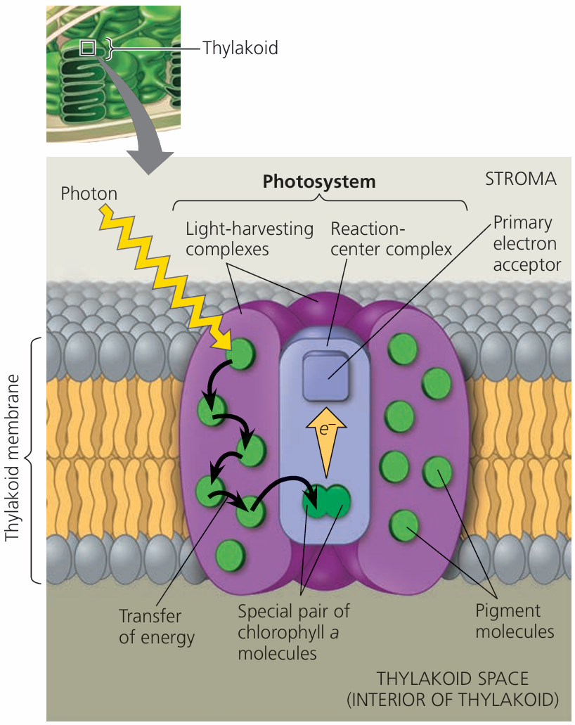 | Energy Transfer | Excited electrons help make ATP & NADPH |