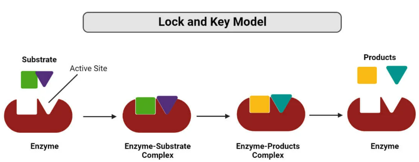 - The active site must match the substrate — like a lock and key (or more accurately, an induced fit that molds to the substrate).