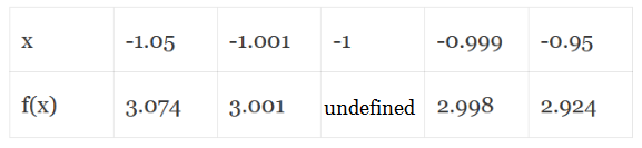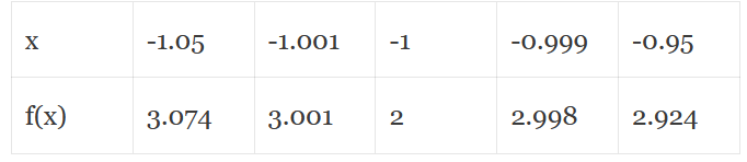 The graph of \(f \) shows that \(\lim_{x \to -1}f(x) =3\) and f(−1)=2. This table is consistent with that information.