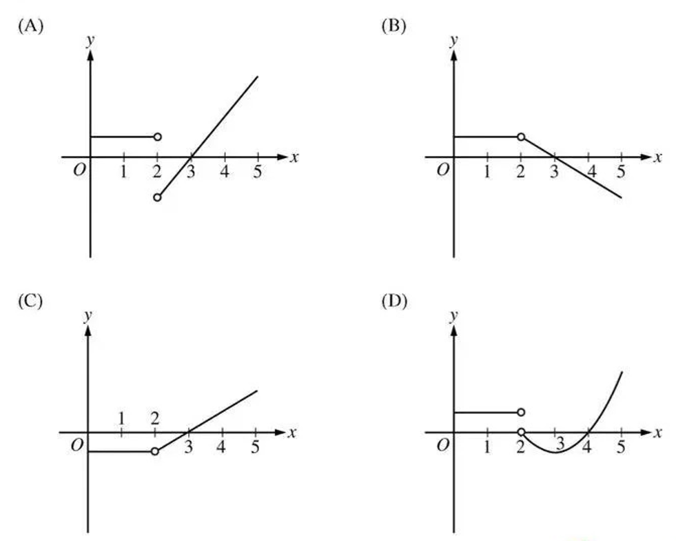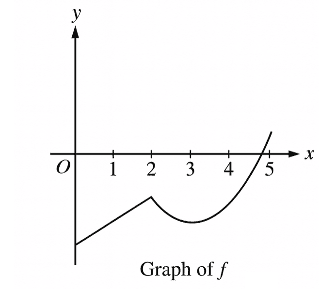 The graph of \(y=f(x)\) on the interval \(0<x<5\) is shown above. Which of the following could be the graph of \(y=f'(x)\)?