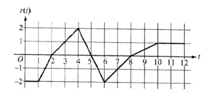 The rate of change of the water level in a lake at time \(t\) months is \(r(t)\) feet per month. The graph of \(r\) is shown for \(0\le t\le 12\). For which times \(t\) with \(0<t\le 12\) is the water level equal to its level at \(t=0\)?