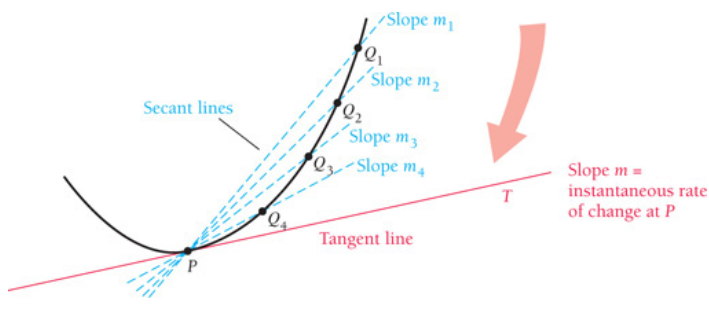 The instantaneous rate of change of a function at a point is the slope of the tangent line at that point.