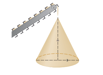 Sand is falling from a conveyor belt to form a conical pile.