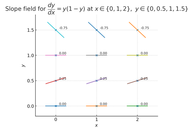 The slope function is \(m = y(1 – y)\).