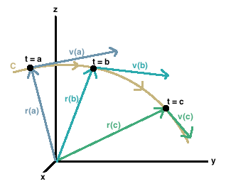- The vector \( \mathbf{r}(t) \) represents the position of a particle at time \( t \).