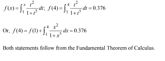 If f is the antiderivative of \(\frac{x^2}{1+x^5}\) such that f (1) = 0 , then f (4) =