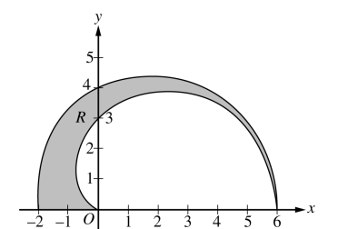 \[ \text{Area}=\tfrac12\int_{\alpha}^{\beta}\Big(R_{\text{outer}}(\theta)^{2}-R_{\text{inner}}(\theta)^{2}\Big)\,d\theta. \] In the first and second quadrants, \(\theta\) runs from \(0\) to \(\pi\). From the figure and definitions, the outer radius is \(g(\theta)=4+2\cos\theta\) and the inner radius is \(f(\theta)=3+3\cos\theta\). Therefore, \[ \text{Area}=\tfrac12\int_{0}^{\pi}\Big(g(\theta)^{2}-f(\theta)^{2}\Big)\,d\theta. \] ✅ Answer: (D)
