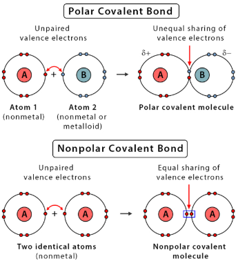 Key Idea: Bond polarity depends on electronegativity difference. Nonpolar covalent bonds lead to uniform charge distribution, while polar covalent bonds result in partial charges that strongly affect molecular properties (e.g., solubility, boiling point).