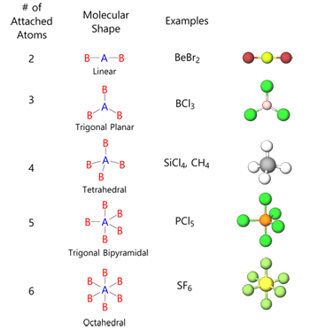 | Number of Electron Regions | Electron Domain Geometry | Ideal Bond Angles |