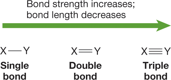 Key Idea: Bond length decreases as bond order increases and increases with larger atomic radii. Shorter bonds are generally stronger than longer bonds.
