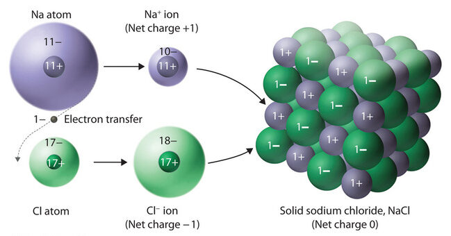 - Ions are arranged in a crystalline lattice to maximize attractions between opposite charges and minimize repulsions between like charges.