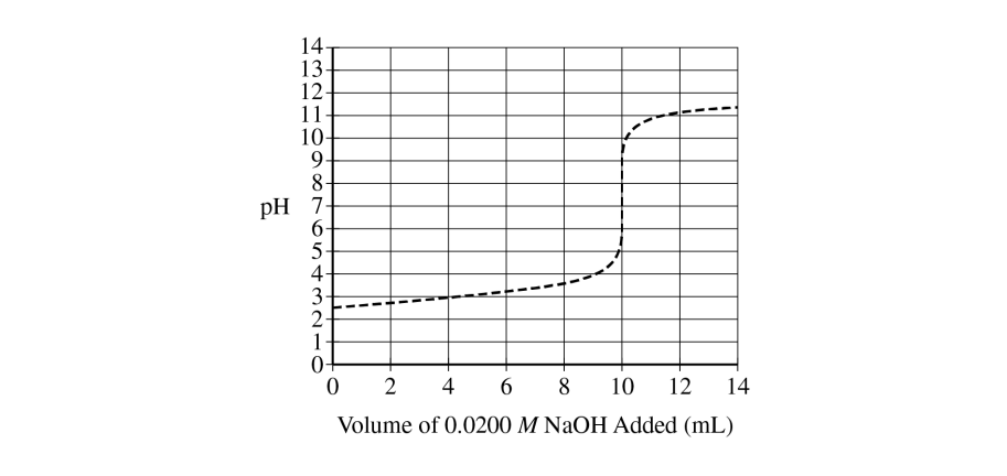 The \( pK_{a} \) is read at the half-equivalence point. Since equivalence occurs near \( 10\ \mathrm{mL} \), the half-equivalence point is near \( 5\ \mathrm{mL} \), where the graph shows a pH of about \( 3 \).