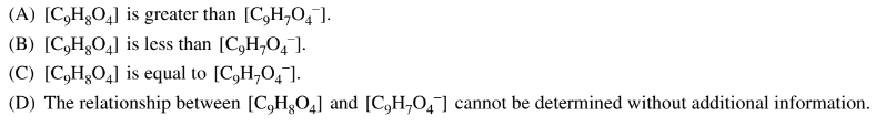 mole ratio, the concentration of \(C_9H_80_4\) is equal to the concentration of \(C_9H_70_4^-\) at the equivalence point.