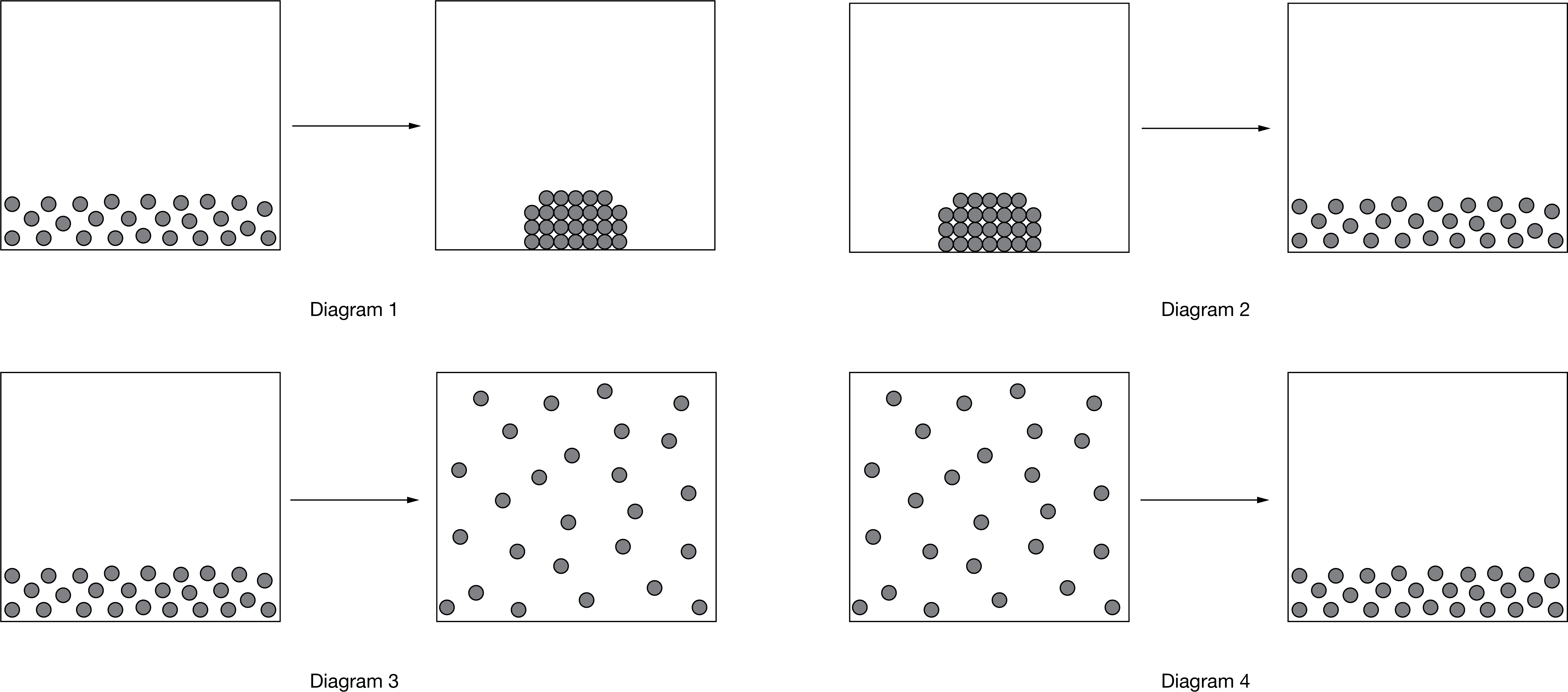 The particulate representation that shows a process during which the entropy of the system decreases is: