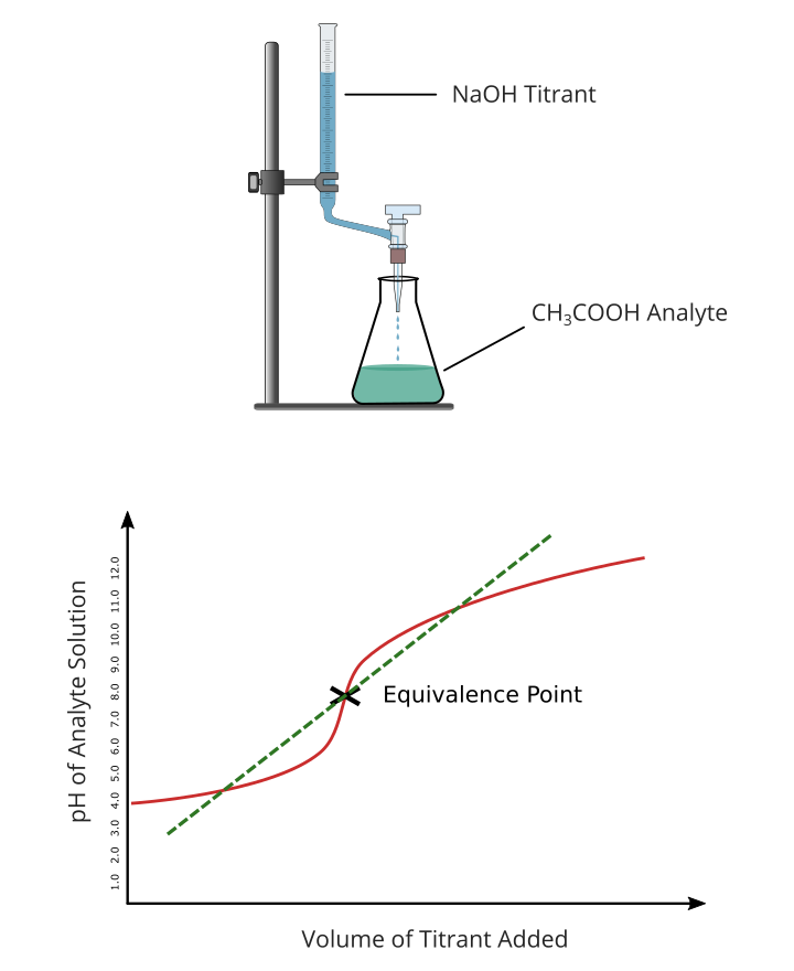 - Equivalence Point: The point at which the moles of titrant added are exactly stoichiometrically equivalent to the moles of analyte present.