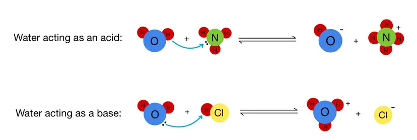 - Therefore, water can participate in both acidic and basic reactions.