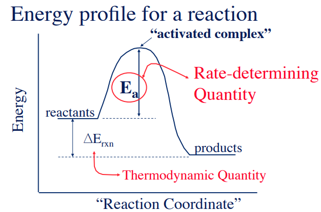 - \( \mathrm{\Delta E_{rxn} = E_{products} – E_{reactants}} \)