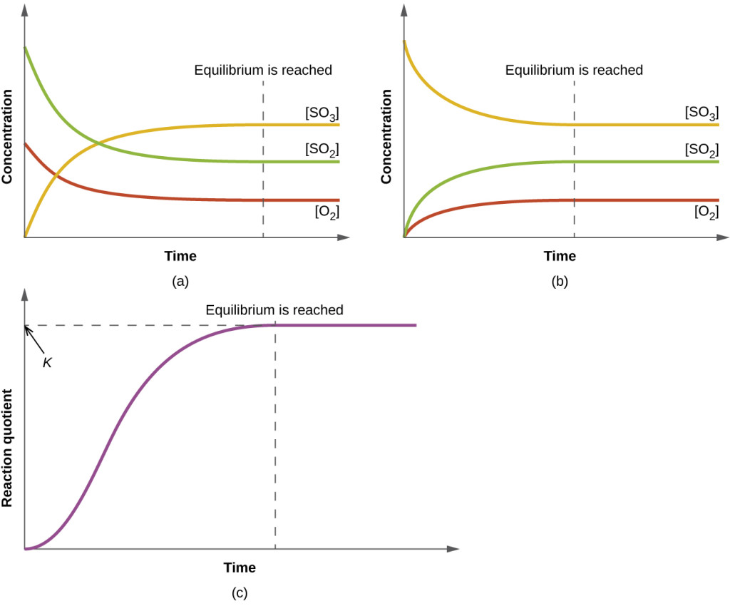 - (a) The change in the concentrations of reactants and products is depicted as the 2SO2(g) + O2(g) ⇌ 2SO3(g) reaction approaches equilibrium.