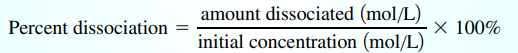 \( \mathrm{\%\,Ionization = \dfrac{[Ionized]}{[Initial]} \times 100} \)