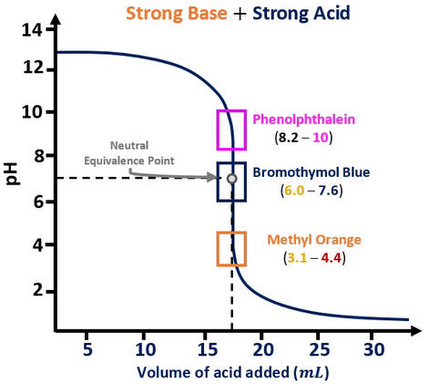 - Strong acid–strong base: pH ≈ 7 → indicators like bromothymol blue (pKa ≈ 7.1).